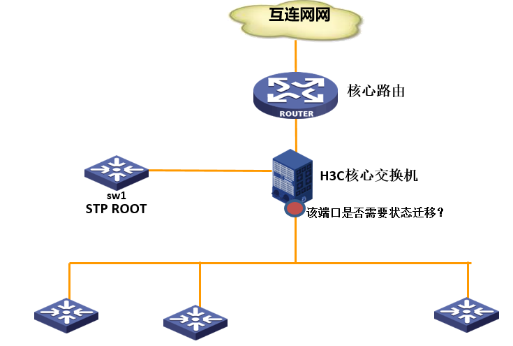由于开局问题,MSTP的根桥根据默认MAC地址计算的根桥在SW1上,现需要修改核心交换机为根桥,修改设备MSTP优先级。在修改优先级过程中,核心交换机的其他下行接口是否会经历Discarding到Forwarding状态迁移?