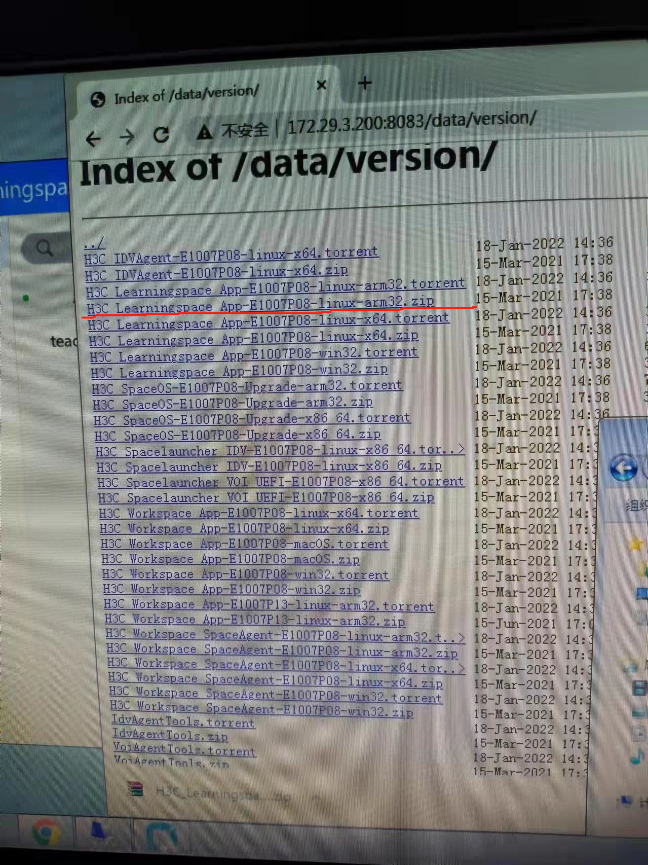 划红线的是客户端包,C113终端刷机包是H3C_SpaceOS-E1007P08-arm32.img,可以联系代表处同事获取