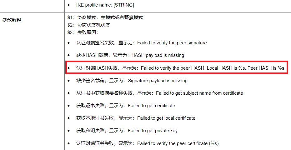 防火墙野蛮模式跟深信服设备对接IPSEC,debug报错Reason: Failed to verify the peer HASH. Local HASH is,共享密钥没有包含特殊字符。
