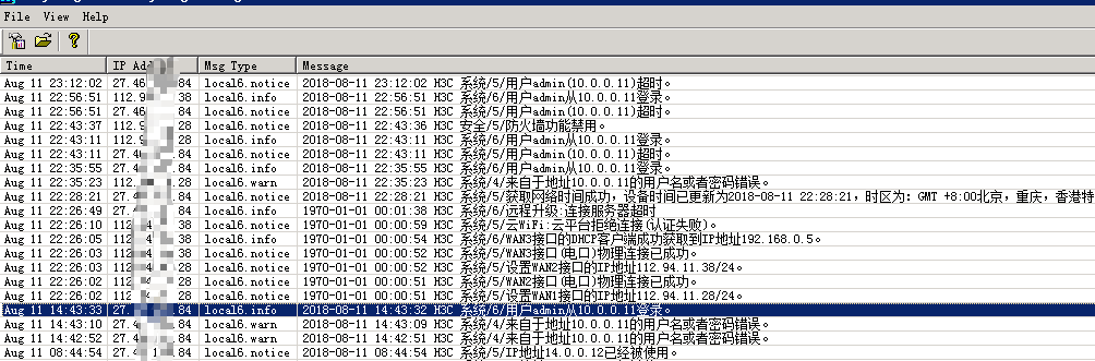 这个路由外接3条宽带线,下接4台s1848g交换机,用户量一百多人吧。路由一直偶发性重启(从日志来看判断),因为是时间是随机性的,不好实地验证是否在重启。路由固件也升级到最新的ERHMG2-MNW100-R1117了,路由也简化了设置,只配置了WAN、DHCP和VLAN,其他参数都是默认没动,但还是会重启。有经验之士,说一下原因,不知道console口是否能查询到问题的根源。 PS:我把日志发送自己的服务器上,重启之前没报异常的。