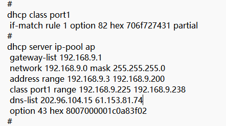 option43是给AC三层注册的,绑定了class port是option82的用于分配固定IP地址