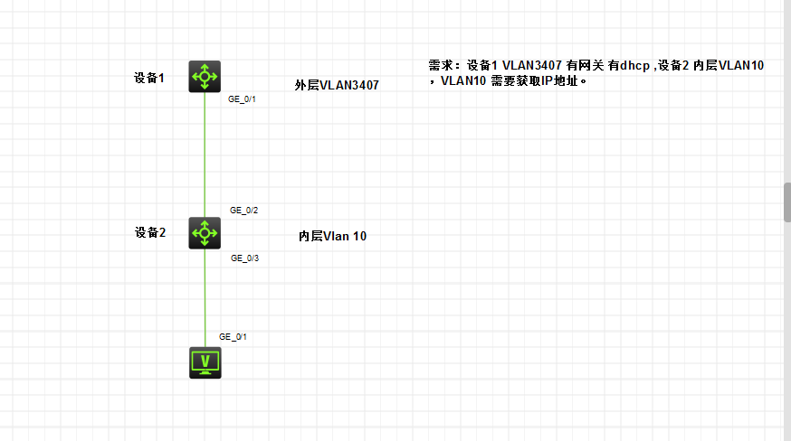 这样设备A可以配置vlan3407并在设备B配置VLAN用于终端获取。