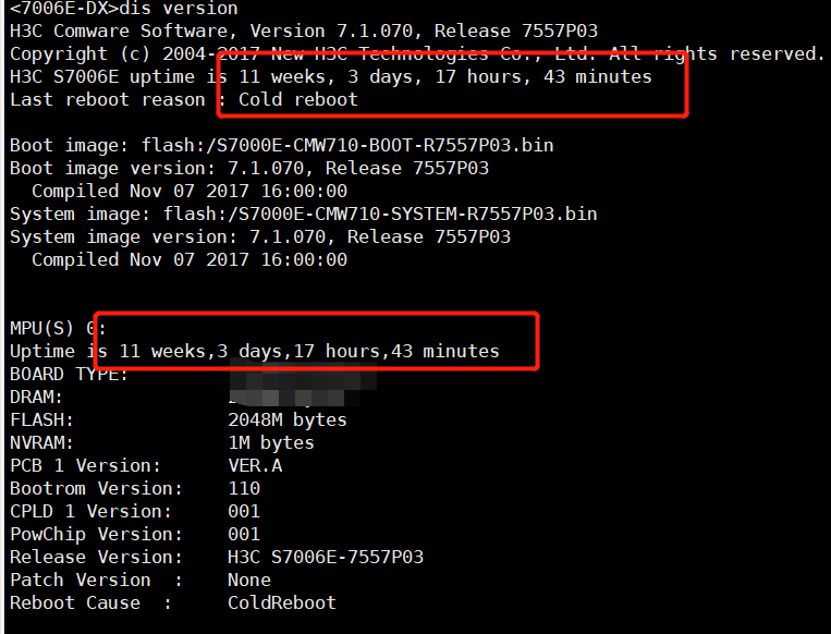 display version回显会有板卡的uptime