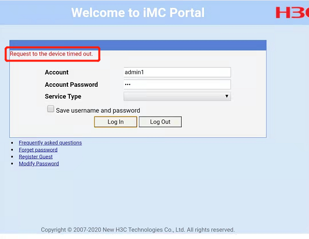 认证接入设备和imc通讯超时