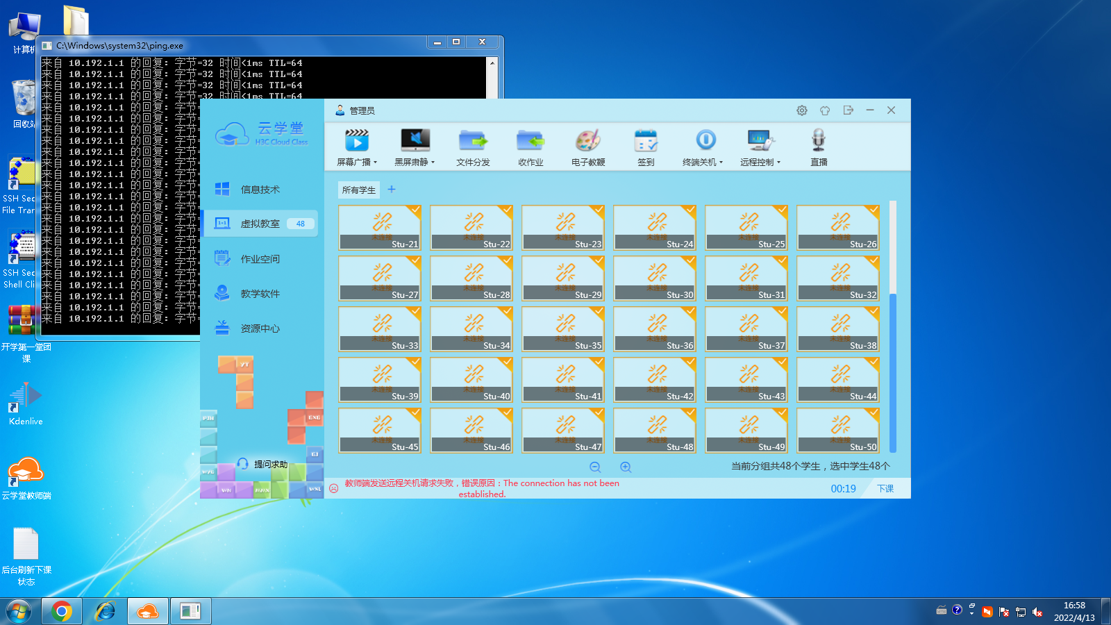 查下教室端和管理平台以及虚机之间的网络通不通呢