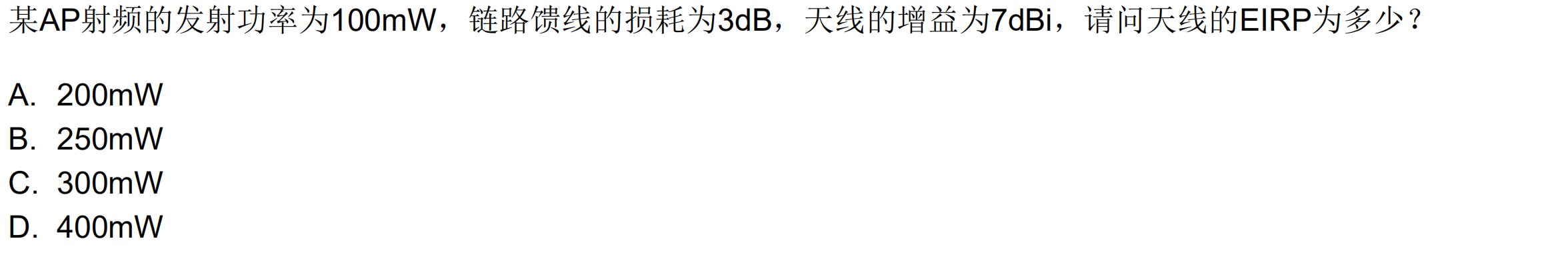 EIRP = P – Loss + G这个公式,问下大家怎么计算出此题的答案,可以给个计算步骤吗 谢谢了