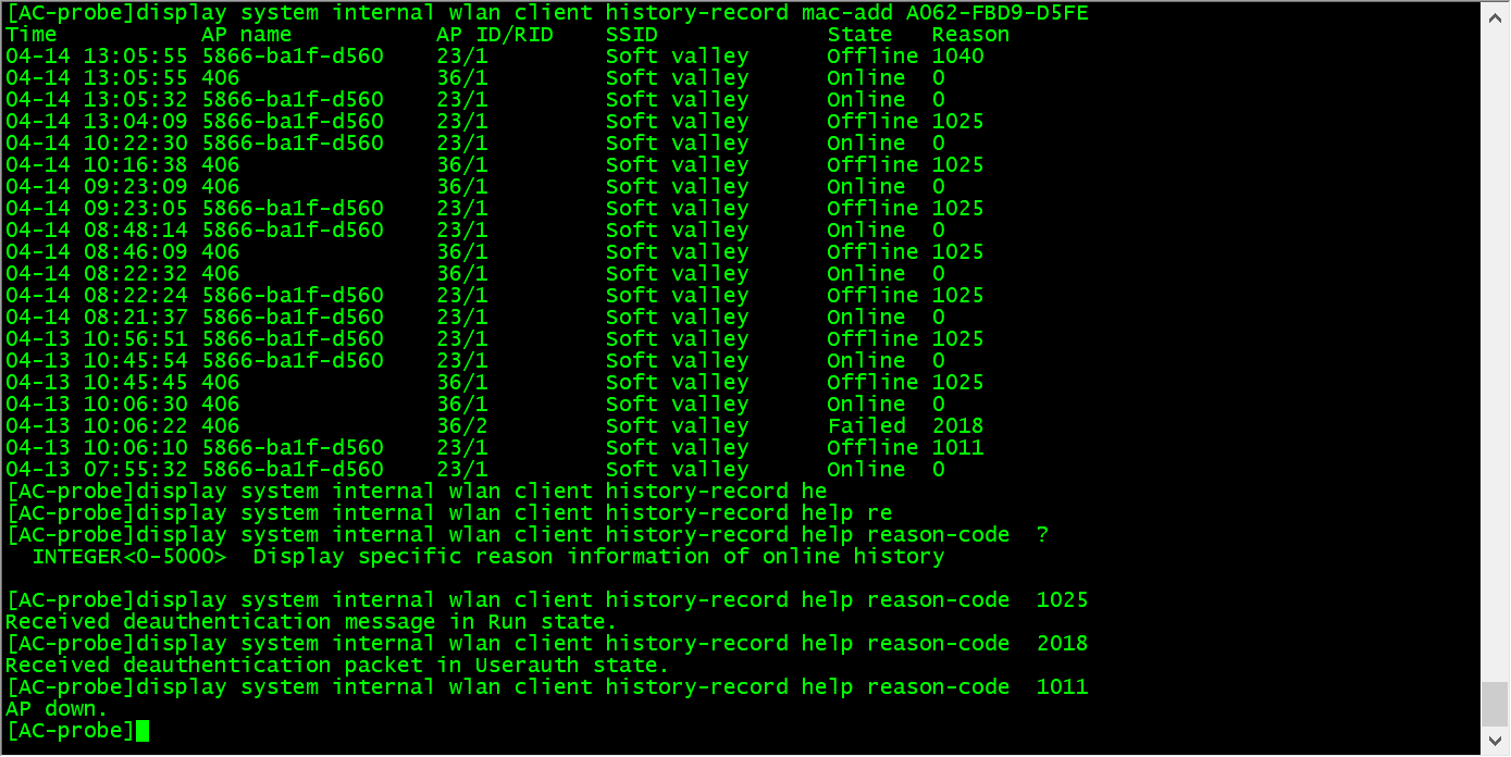 看信息应该是终端主动发送下线的,现场无线覆盖环境是不是存在干扰,或者是AP之间太近,终端漫游,看一下是个别终端还是所有的都这样
