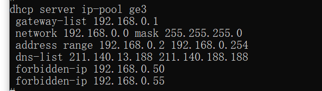 图中的forbidden-ip 192.168.0.50喝forbidden-ip 192.168.0.55是禁止分配0.50,0.55两个ip呢,还是)。50-0.55之间的6个ip呢,我看命令是分成了两条,有点疑惑。