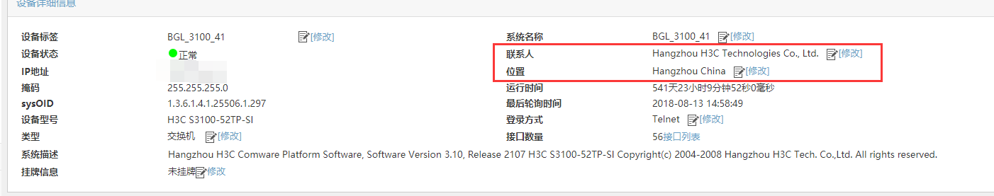 各位大神:华三的交换机这个联系人和位置怎么在交换机上怎么去配置。