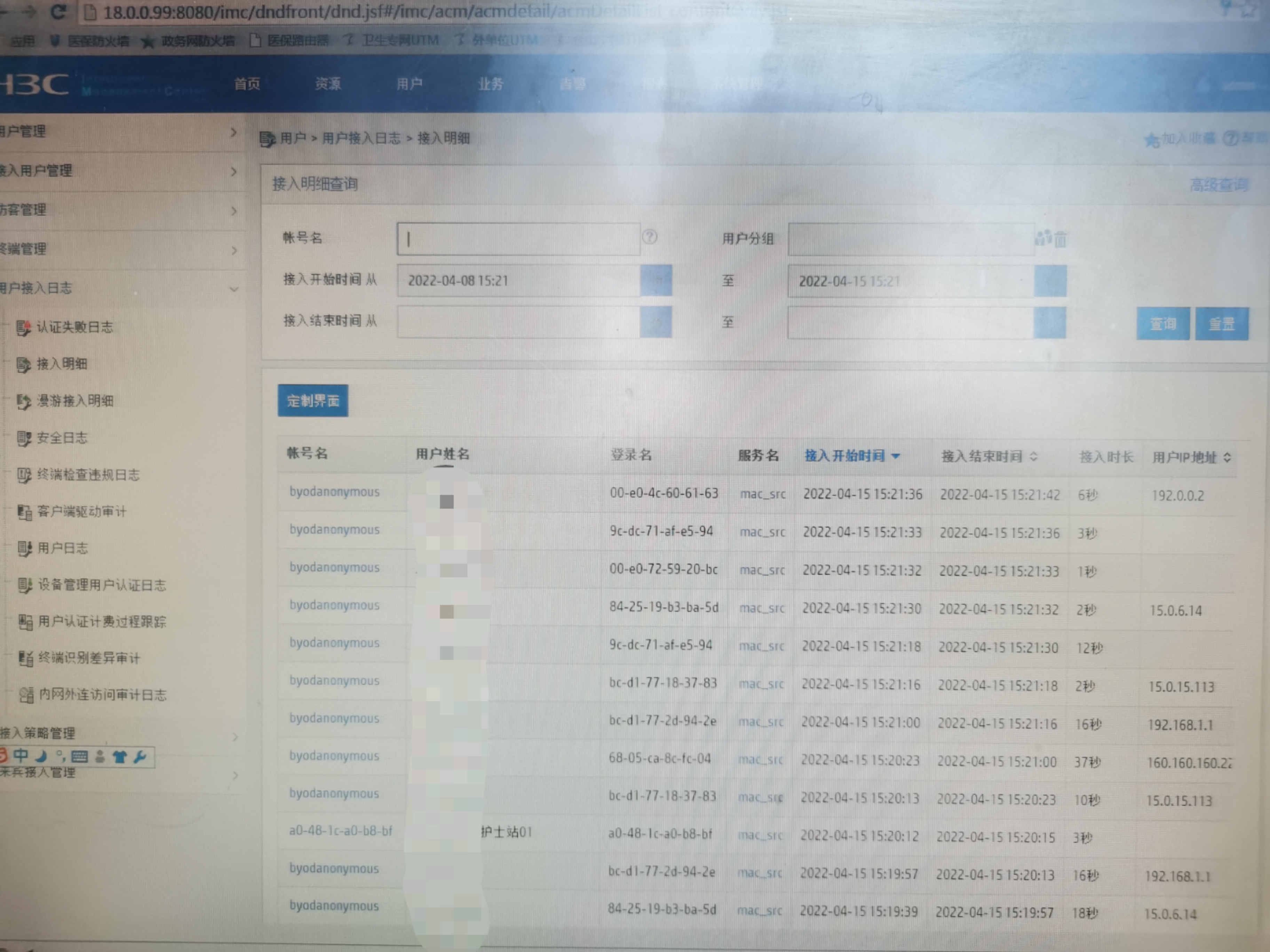 这是byod匿名用户,每个用户上线的时候都会先以byod匿名用户上线。现场应该是做的mac portal吧