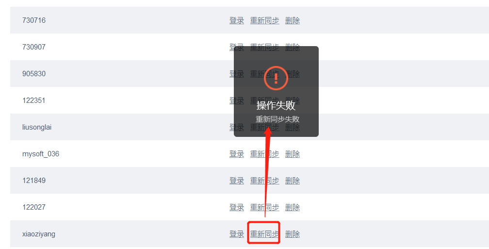 应用发布服务器同步用户失败