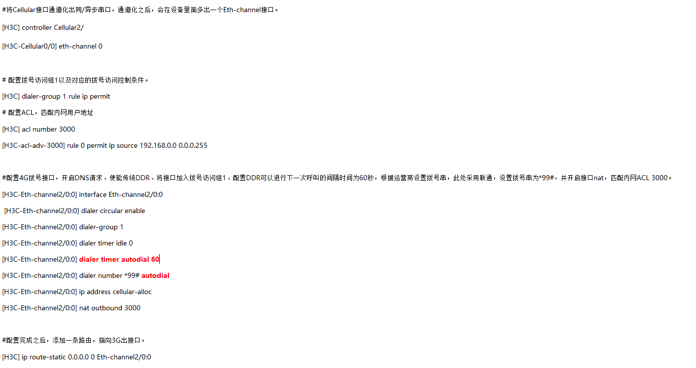 请问下各位大佬,现在有一台MSR810 路由器,现在想插张4g卡,然后在该路由器下面下挂瘦AP,AP 通过公网地址在ac上注册AP,请问下,现在我想配置MSR810路由器,是不是写上interface Cellular-Ethernet1/0/1