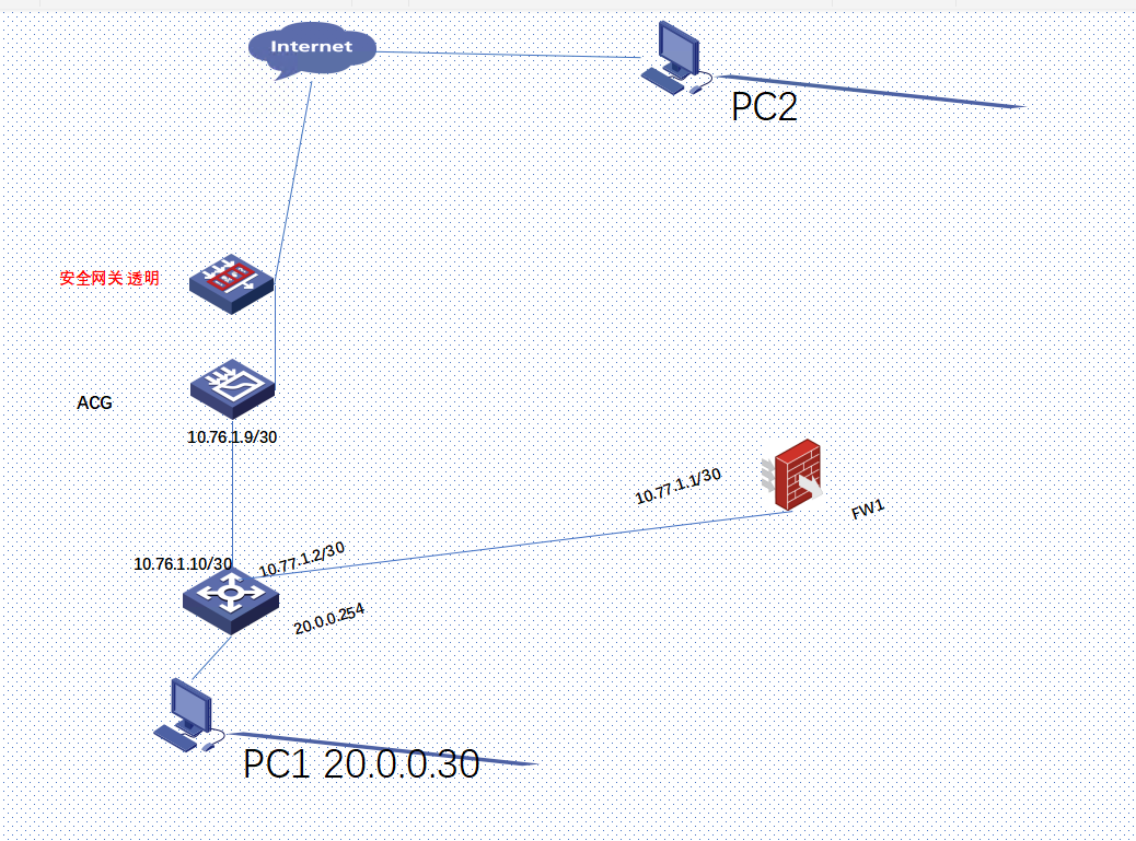 PC2通过ssl vpn连接到FW1上,获取到10.76.4.2地址,FW1加了IP资源,网关10.76.4.1,可访问PC1,现在测试pC1到pc2文件下载速度很慢,只有1MB左右,问题1:这个是哪里的问题:?只有acg上加了流量限制,还把pc1和FW1的加入了例外。问题2:在pc1和pc2的文件传输中在acg上看到的应该是哪个ip地址呢?