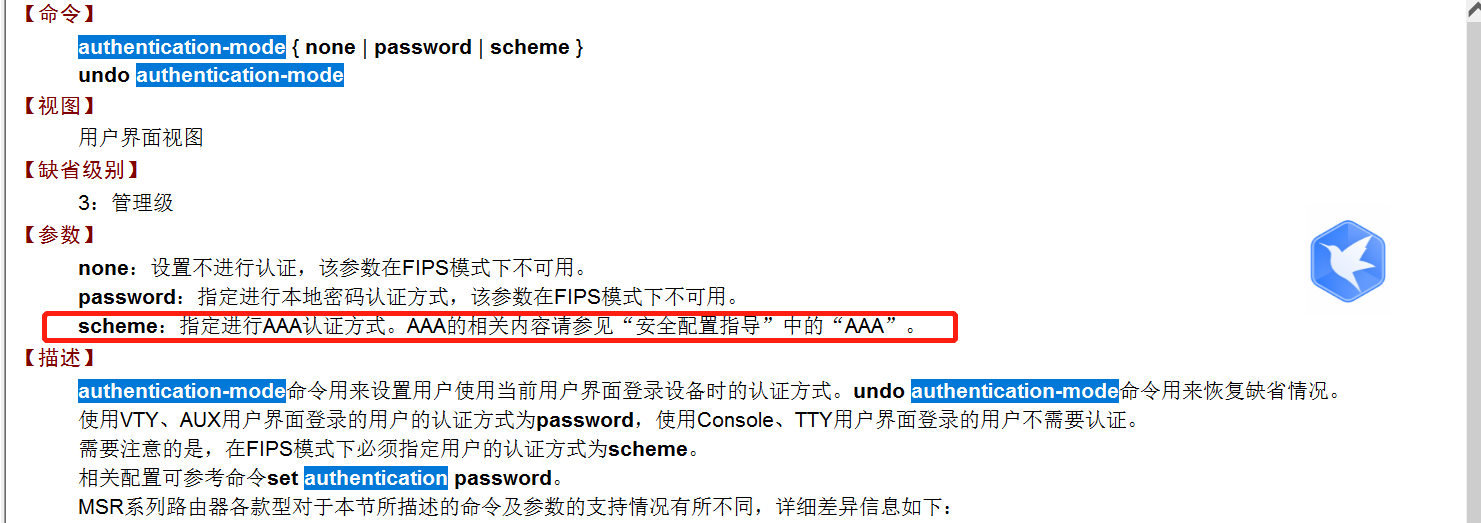 在配置ssh的时候line vty 0 63 下面有一条 authentication-mode scheme命令,这个命令的解释是设置用户登录时的认证方式,采用AAA认证,但是不配置3A配置本地建一个用户也可以登录,这是为啥?