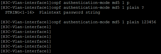 ospf authentication-mode md5 1 plain 123456