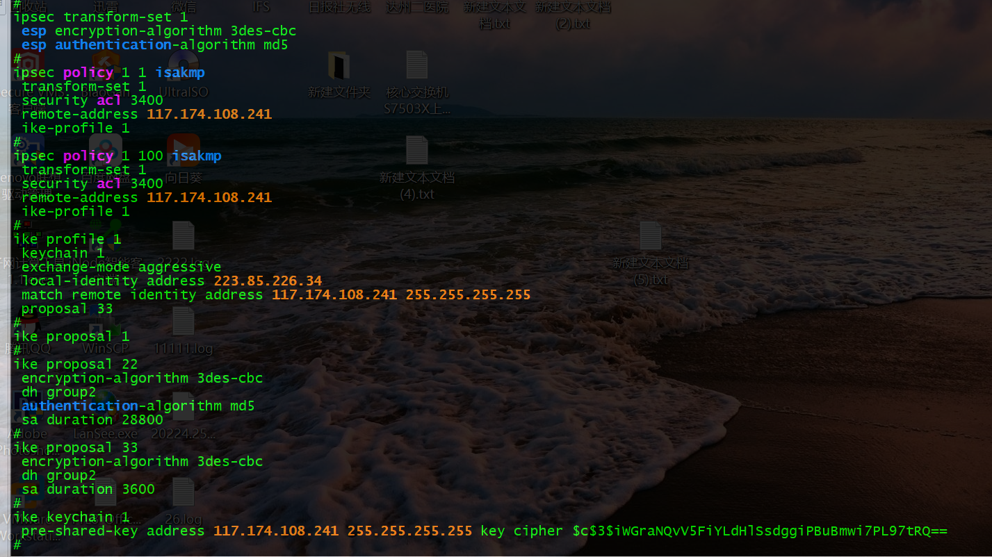 还真是,看成22了,那光看配置,好像也没啥问题,你把两边的ike sa和ipsec sa都清空下,然后deb ike,你上边上去像是deb了ipsec,其实不用deb ipsec,deb ike,看下ike协商过程,看看是卡在那个阶段,如果ike有拆线消息,看下是那边发起的拆线
