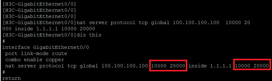 nat ser pro udp g x.x.x.x 不能支持起始端口和结束端口