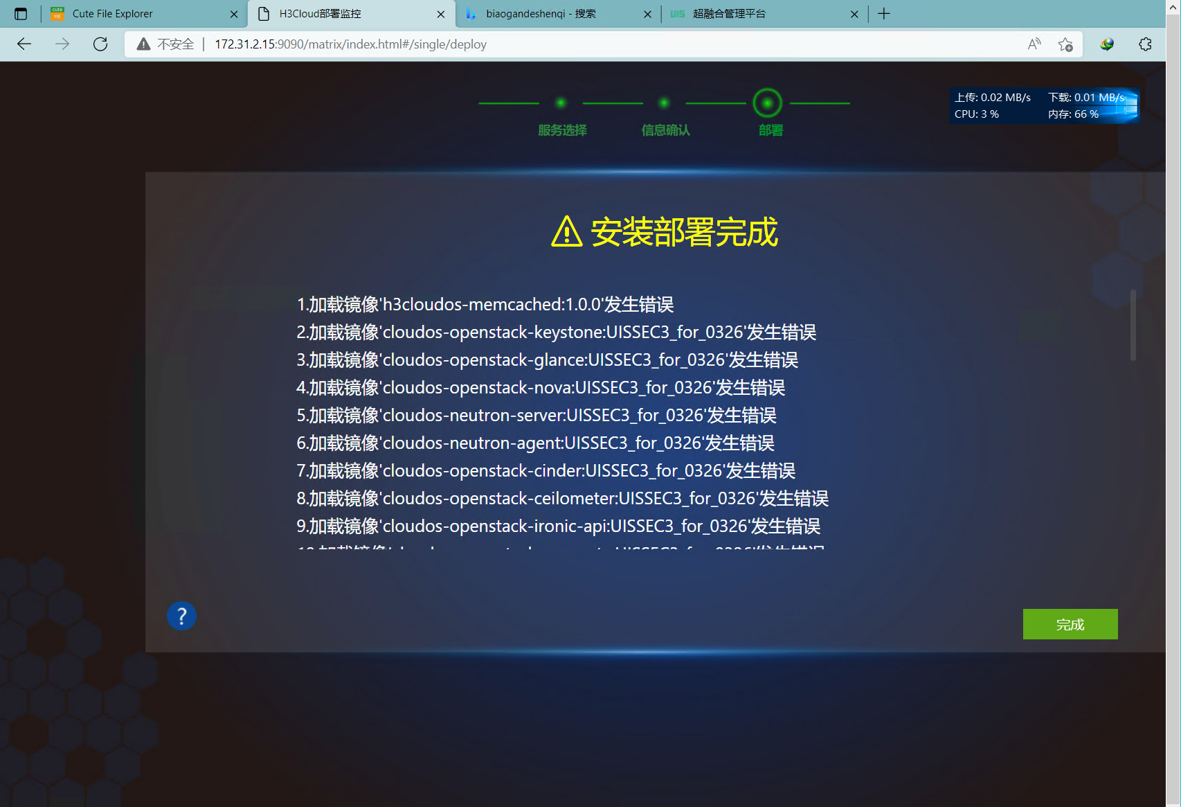 uis-sec manager 安装完毕显示好多组件错误 超时 错误