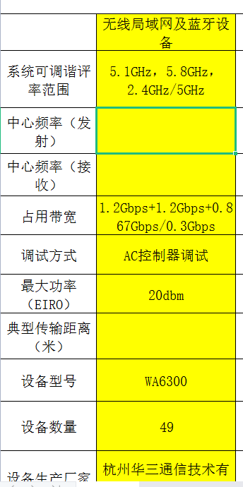 请问wa6300的中心频率(收,发),传输距离(米),频率调试方式是多少?