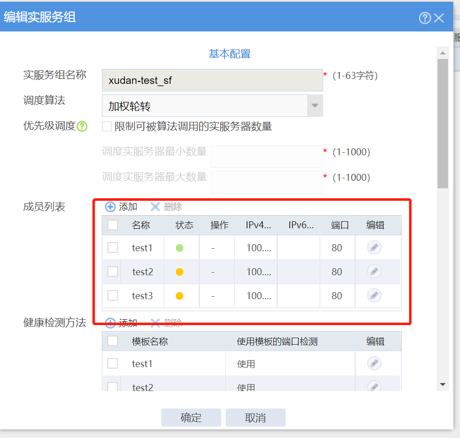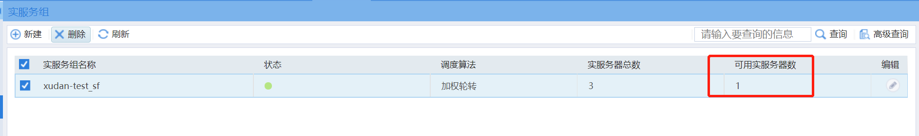 现在实服务器的状态都正常,但是实服务组里面可用设备只有1台,这个正常吗,设备需要下什么内容,是和实服务组的调度算法有关系吗