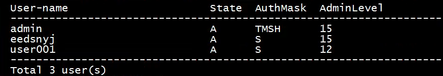 TMSH代表Telnet权限、Console 权限、 SSH 权限、 HTTP权限、