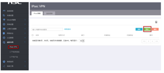 #选择【虚拟专网】--【IPsec VPN】--【IPsec策略】单击【添加】按钮 。