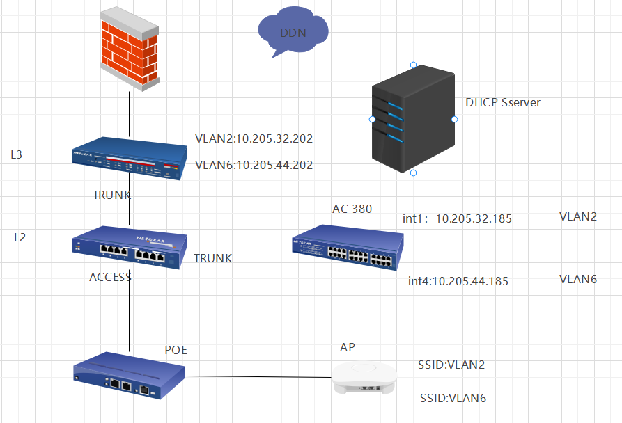 我撤掉了poe交换机,直接接L2,ap dhcp只能获取到VLAN2的地址。