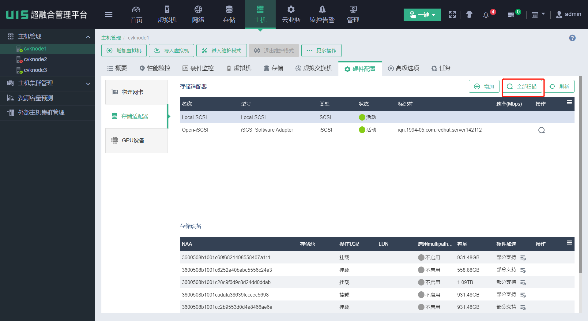 UIS之前是有做过什么操作吗,服务器关机,异常掉电之类的,可以强制扫描一下,再启动,也可以重启多路径:service multipath-tools restart,也可以删除存储卷再添加,删除存储卷再添加不会影响存储卷里的数据,再不行联系400看下日志分析具体原因。