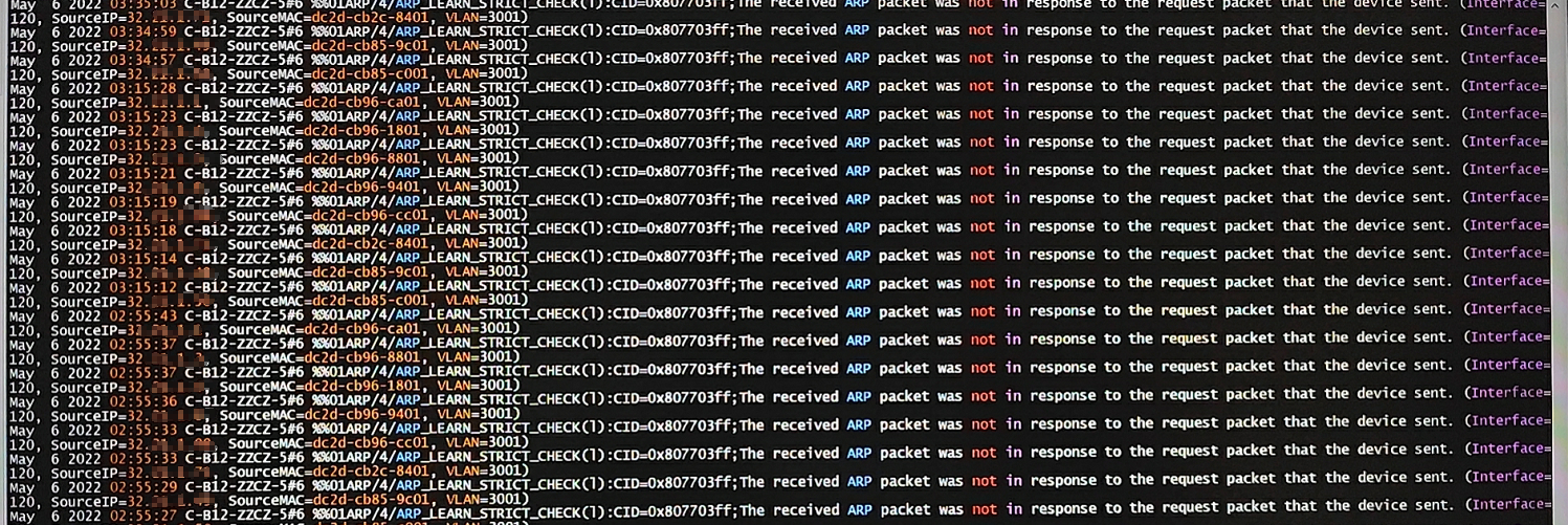 这应该是华为设备的日志,设备收到的ARP报文非本设备发送的ARP请求报文的应答报文。