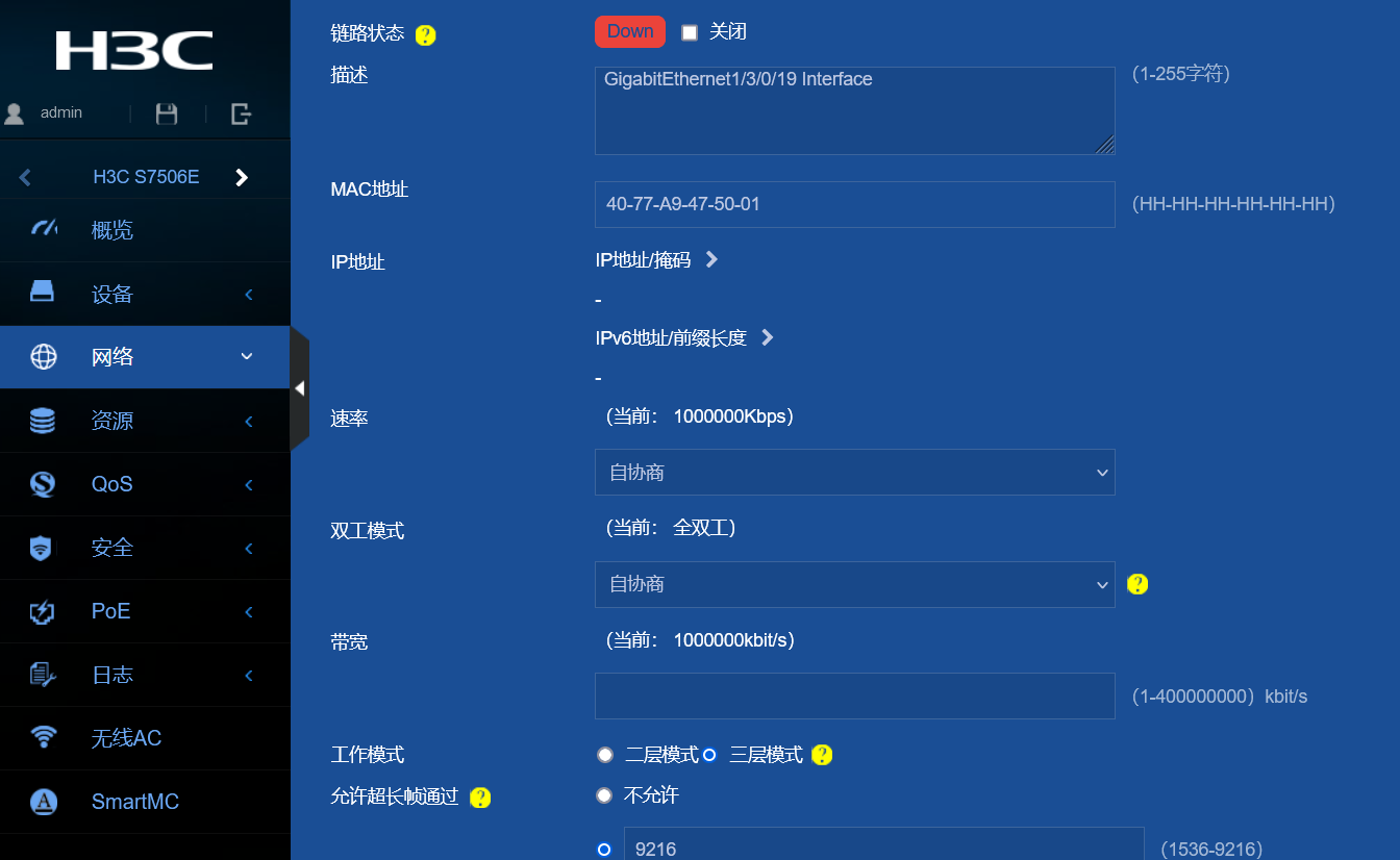 H3C交换机产品没有开启三层一说法,因为H3C三层交换机产品缺省就是支持三层转发的。