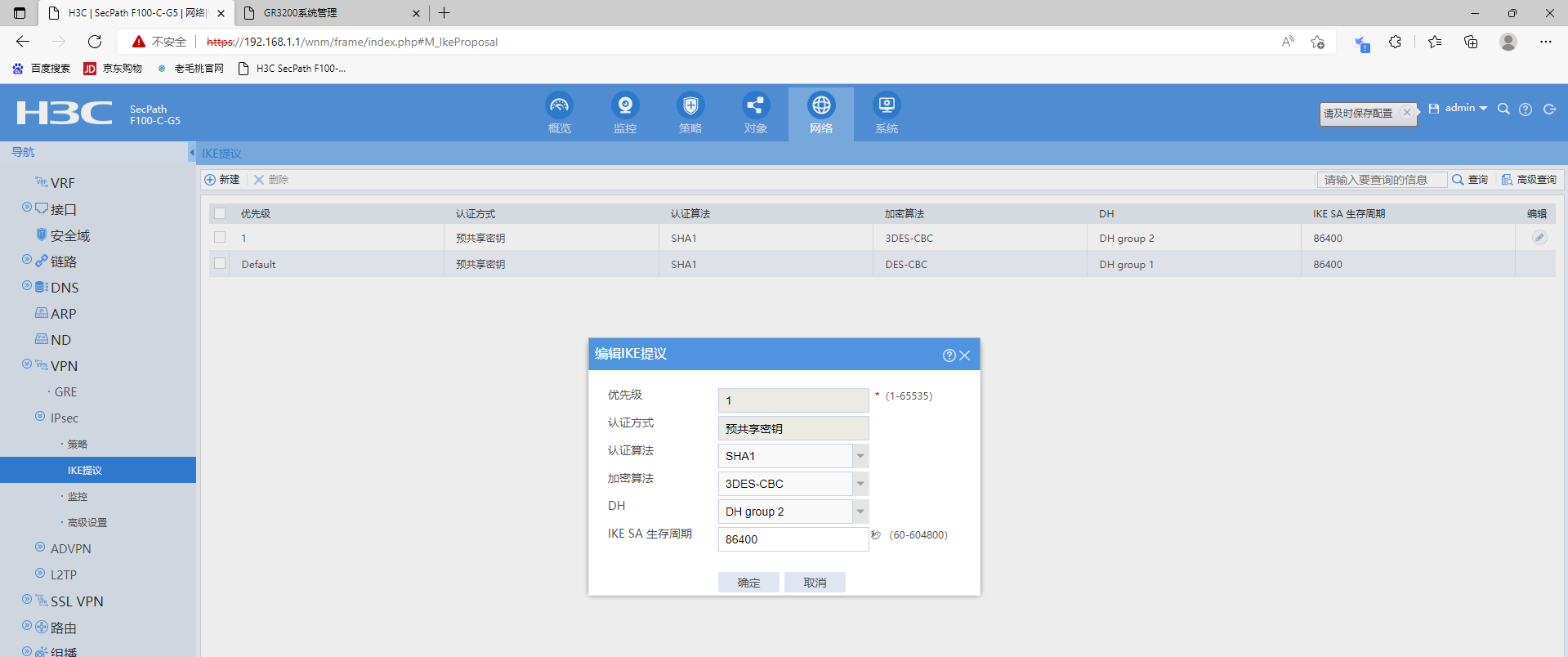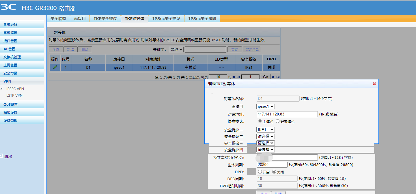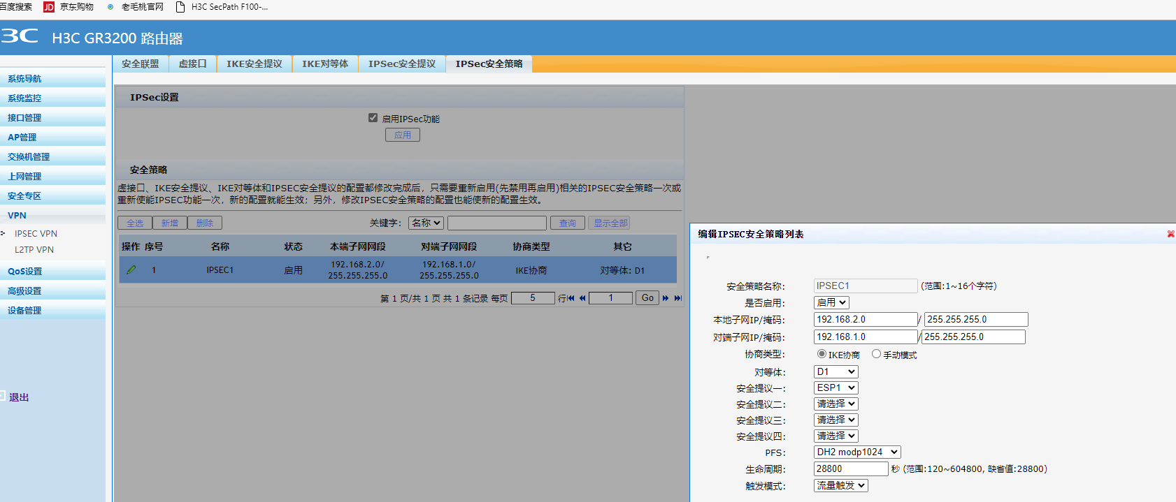 3、两端参数配置完成后VPN还是无法建立通信