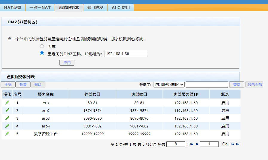 3、虚拟服务器,重定向内网服务器,IP:192.168.1.60