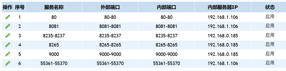 不是80端口 是其他的端口 内网服务器是192.168.0.185的 8235-8237端口和8265及9000端口