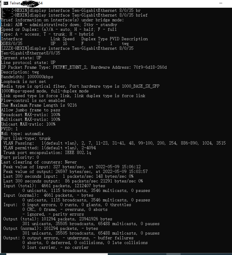 interface Ten-GigabitEthernet8/0/35