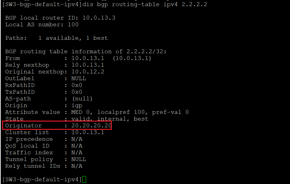 originator id应该是始发路由器的router-id,也就是sw2的router-id,你看一下是不是