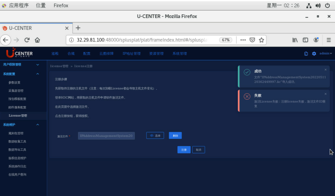 关于aom平台license这块 ,导入激活文件成功,但ip地址功能仍未能启用,重新申请license和关机重启未有效果。