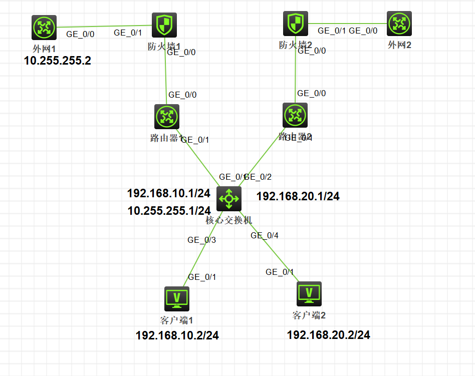 模拟了一个实验,有两个外网要接进来,要求局域网的两个部门分别走两个专线出去上网,于是在核心上面做了策略路由引流,让部门1(客户端1)从线路1上外网1,部门2(客户端2)从线路2上外网2.做了策略引流之后,达成模拟效果,客户端1可以正常ping通外网1,客户端2可以正常ping通外网2,客户端1与客户端2之间不互通。但是现在碰到了一个问题,虽然客户端1可以正常ping通外网1,但是核心交换机却ping不通外网1,同样的,核心交换机也无法ping通外网2,尝试用带源地址192.168.10.1(客户端1的网关)ping外网1也还是不通,这是为什么呢?求大佬们解惑!