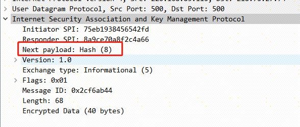 预共享密钥是没有错的,第六个报文应该回复的是identity protection(main mode),但是回复的是informational