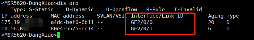通过dis arp 也能查看到mac 地址是从哪个接口学来的,如果整个接口下联的是交换机,那么在到这个下联的交换机上查看mac 地址是从哪个接口学习来的,命令: dis mac-add h-h-h