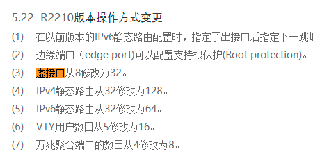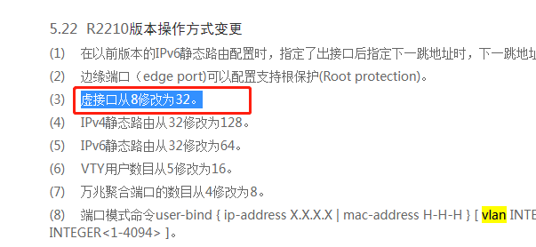 我想问一下,这个型号的设备可以配置多少个vlan虚接口,是八个吗?进虚接口报错:The number of VLAN interfaces exceeded the maximum.