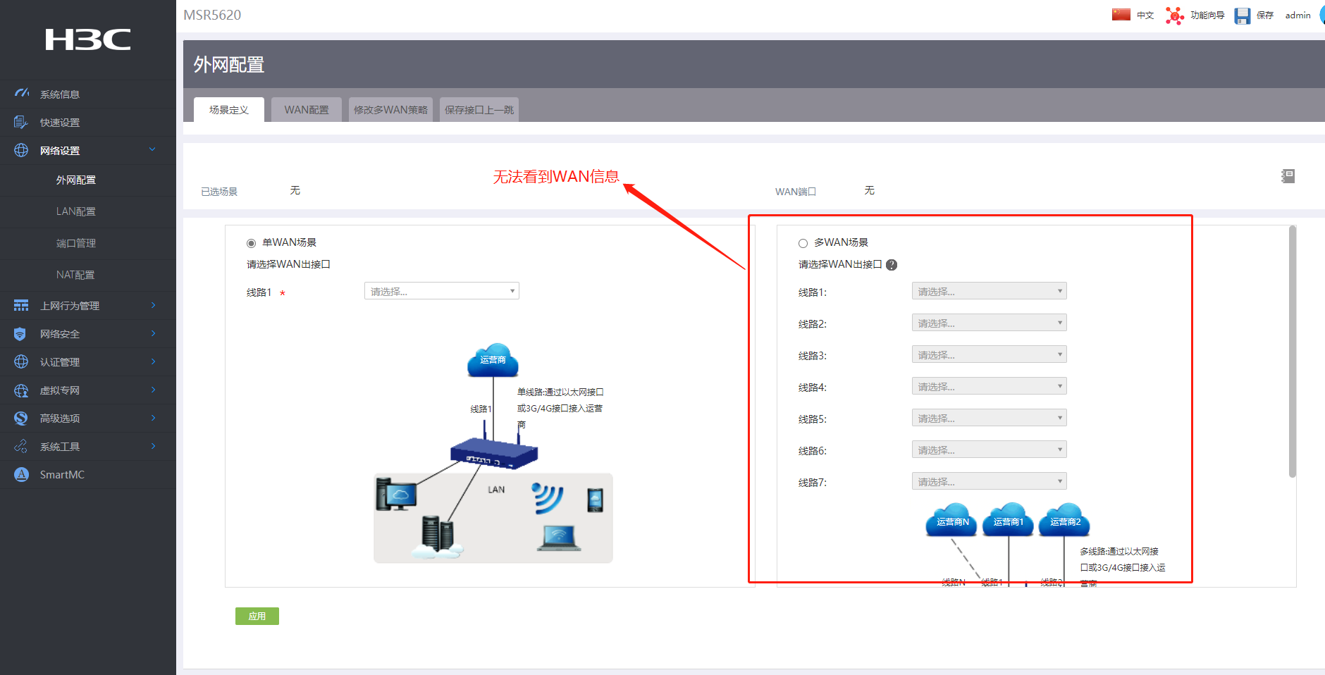 你都是MSR5620的路由器,型号越高,web页面能实现的功能相对越少。我刚好把一个用户的路由器升级到最新版本,换了好几个浏览器,web页面显示的和你一样。通过命令行去配置吧