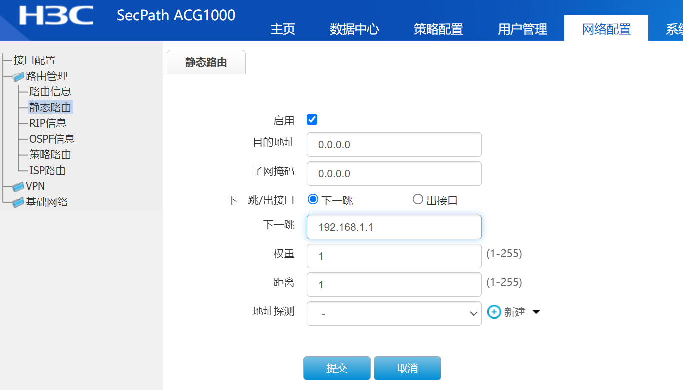 ip route-static 0.0.0.0 0.0.0.0 172.16.99.1