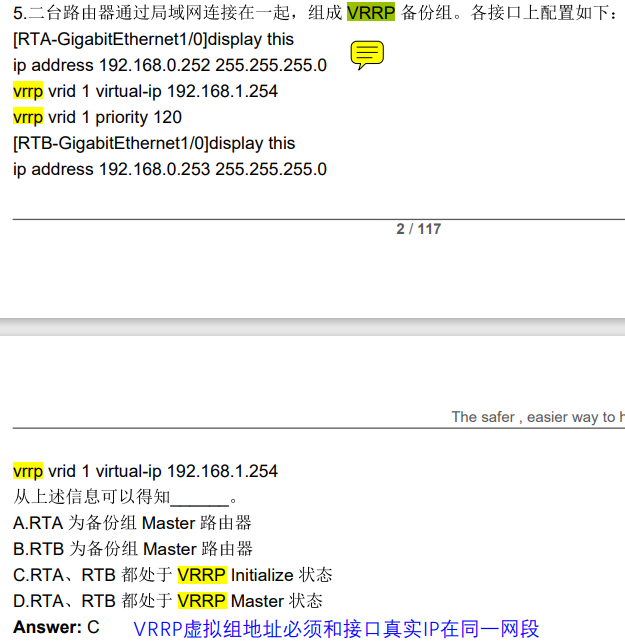 vrrp的虚实地址必需在同网段,否则就是能敲配置但网络起不来。