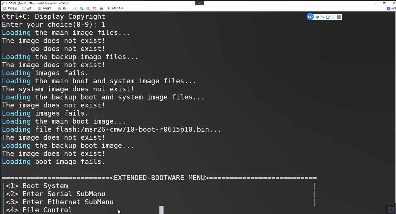 H3C 设备开机自动进入boot ware menu 菜单, 输入序列号“1”后报错images error ,网上排查版本丢失;