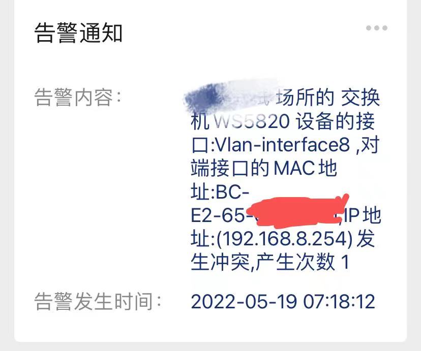 交换机作为无线业务VLAN网关,在云简平台不断收到带网关IP冲突的提示?(图一)