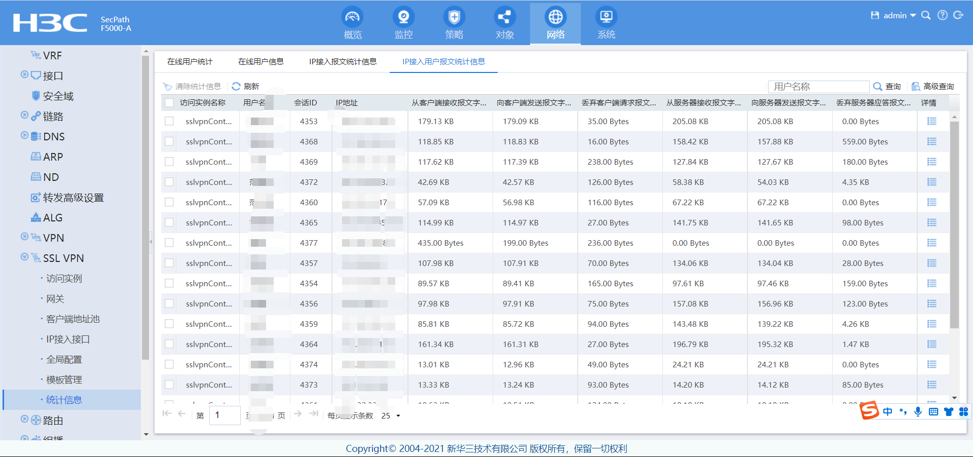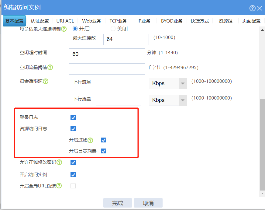 v7防火墙web界面如何开启查看ssl vpn用户审计日志功能、我这边只能看到ssl vpn用户的接入报文、我在访问实例里面开起来日志