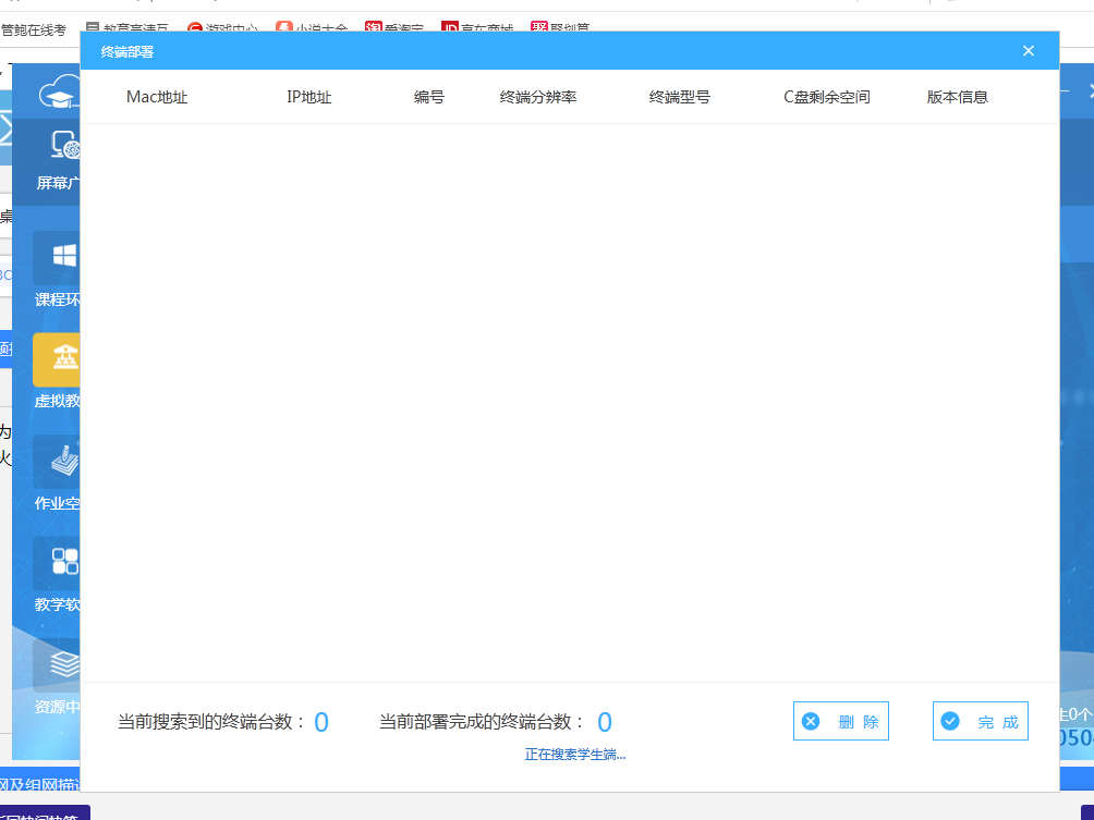 列为 之前部署过的云桌面 版本是E0301H01 在学生端的虚拟教室搜索不出来学生端 并且在终端部署的时候也是搜索不出来客户端 请问是什么原因 防火墙都关闭了 客户端上课都正常