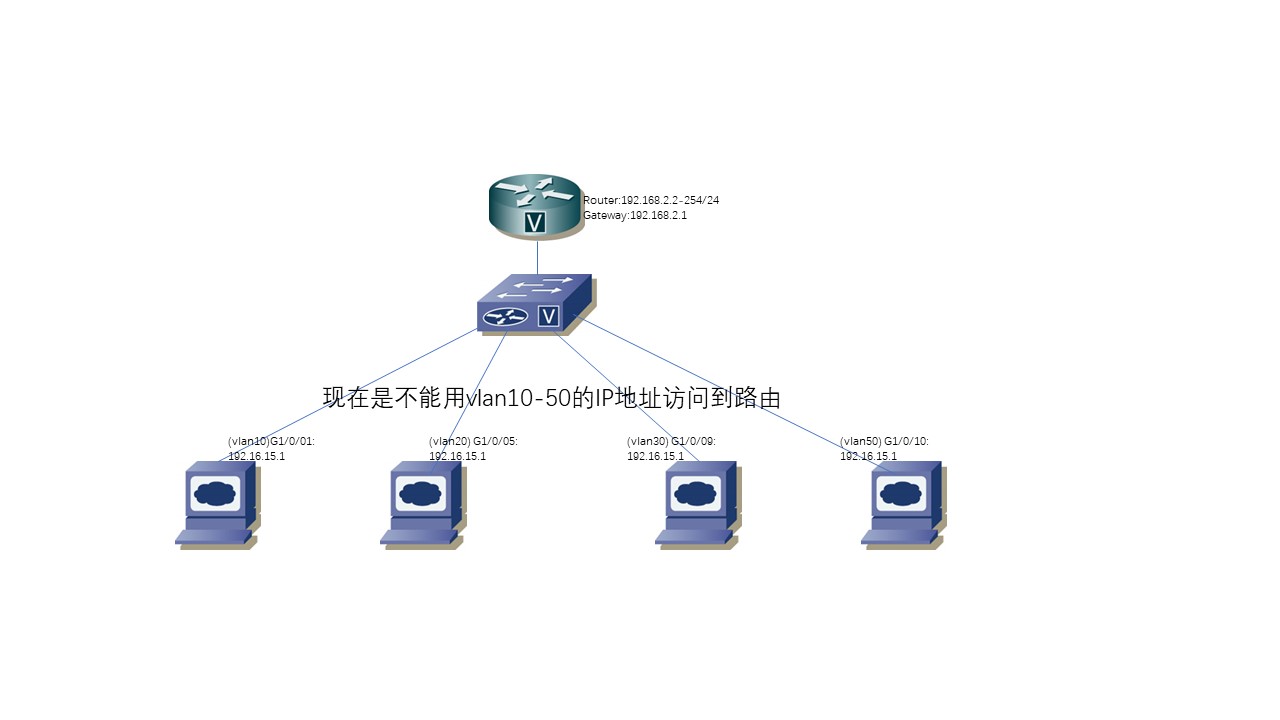 你描述的问题不是很清晰,感觉你的需求,应该是交换机做二层设备,路由器做网关设备。不同的终端属于不同的vlan,在路由器网关设备上,配置不同vlan的虚接口网关地址,路由器和交换机互联的接口配置为trunk口,放通各个终端所属的vlan,交换机下行口配置为access口,放通其所属的vlan就可以了。