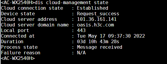 请问WX3510H这款AC支持云平台管理吗?如何通过console口查看设备是否接入或者开启云管理功能?