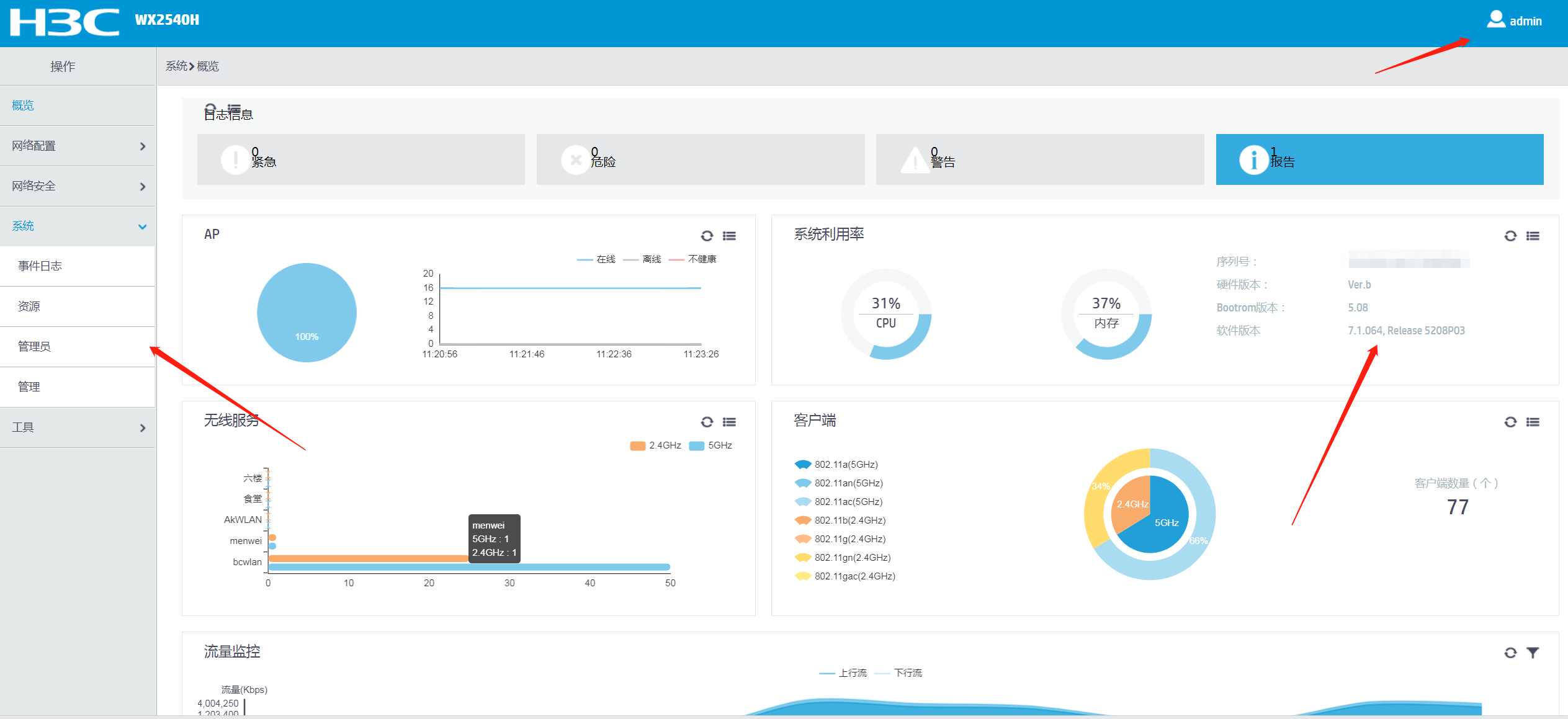 页面下方有系统和网络两个标签